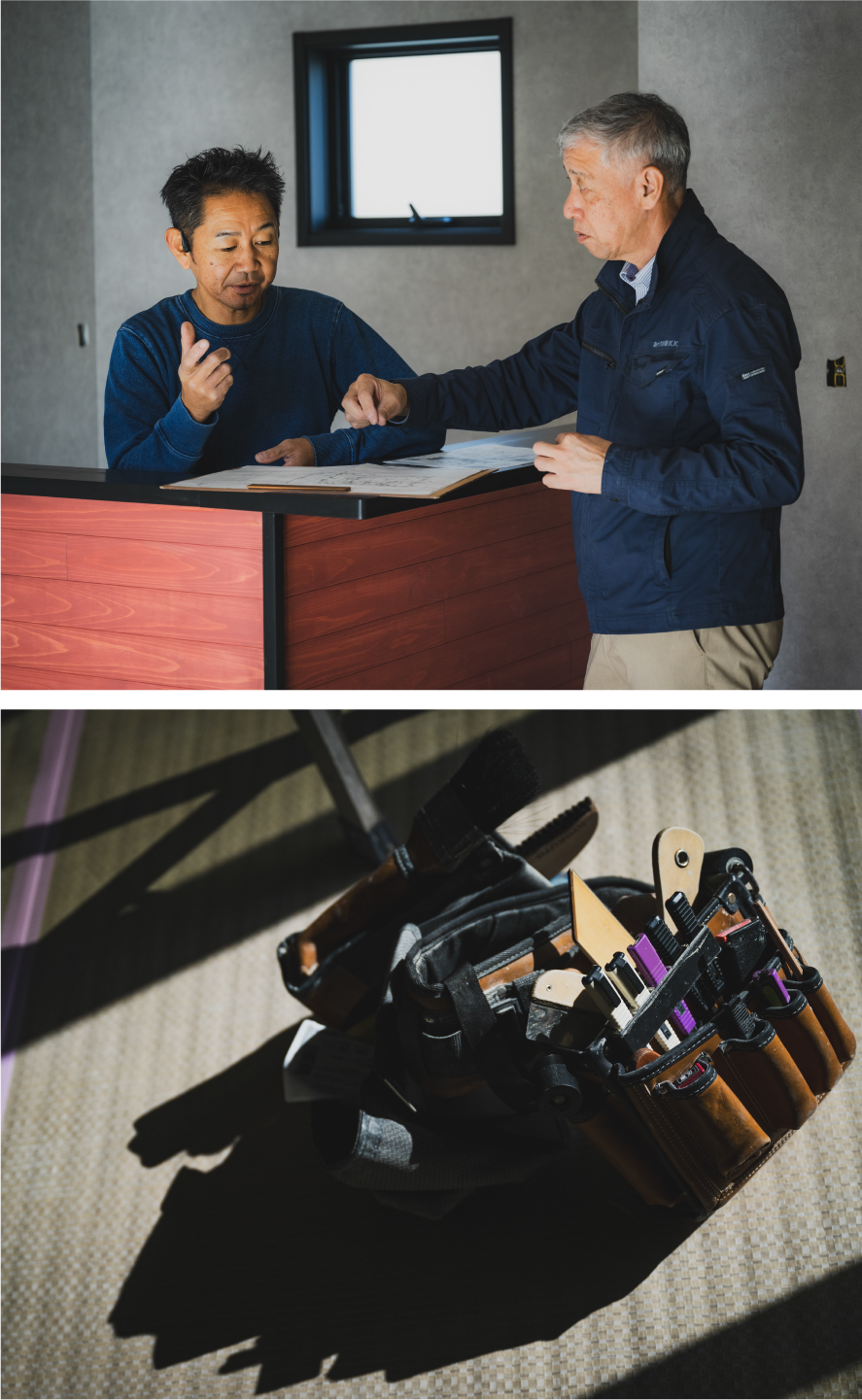 石塚 大工さんなど各方面の職人さんと、細かいところを詰めていくのも僕の仕事なので、現場でのコミュニケーションはとても大切にしています。お施主さんとコミュニケーションできる場でもありますしね。建て終わったらインテリアベストへ仕事がバトンタッチされるので、僕自身もスイッチを切り替えてクロス職人になります(笑)。最後は現場監督に戻って、お施主さんに引き渡しする、ところまでが僕の仕事です。