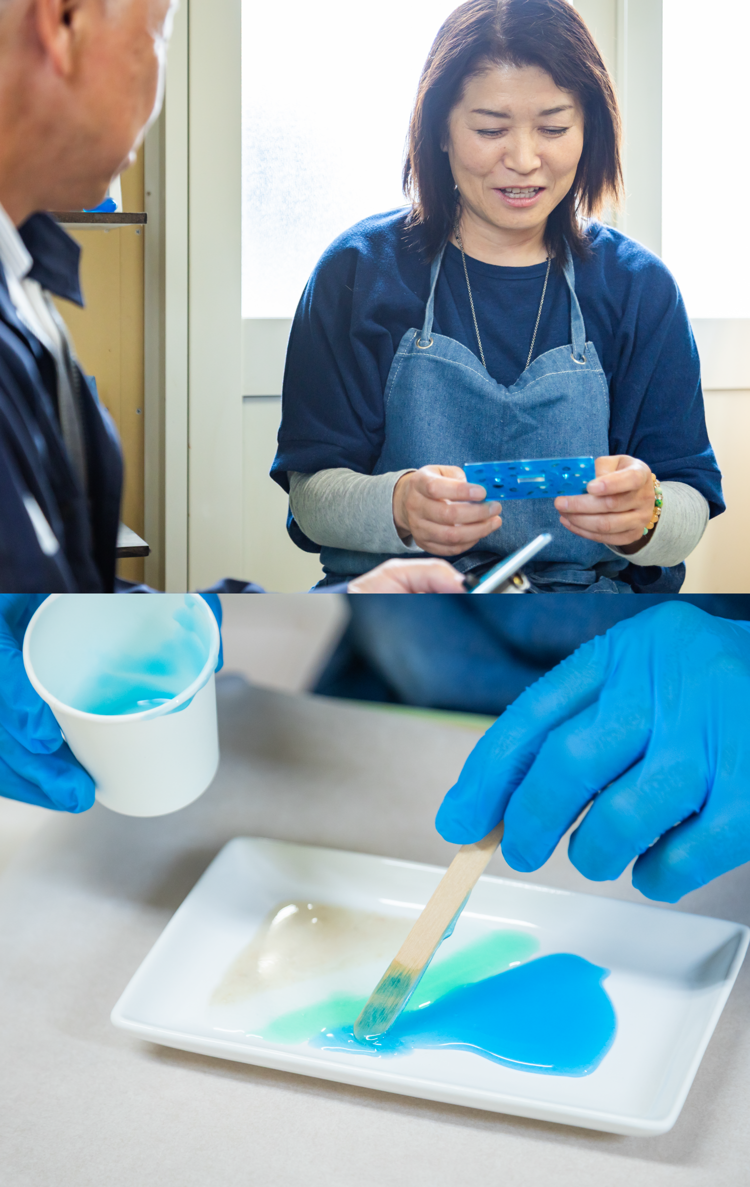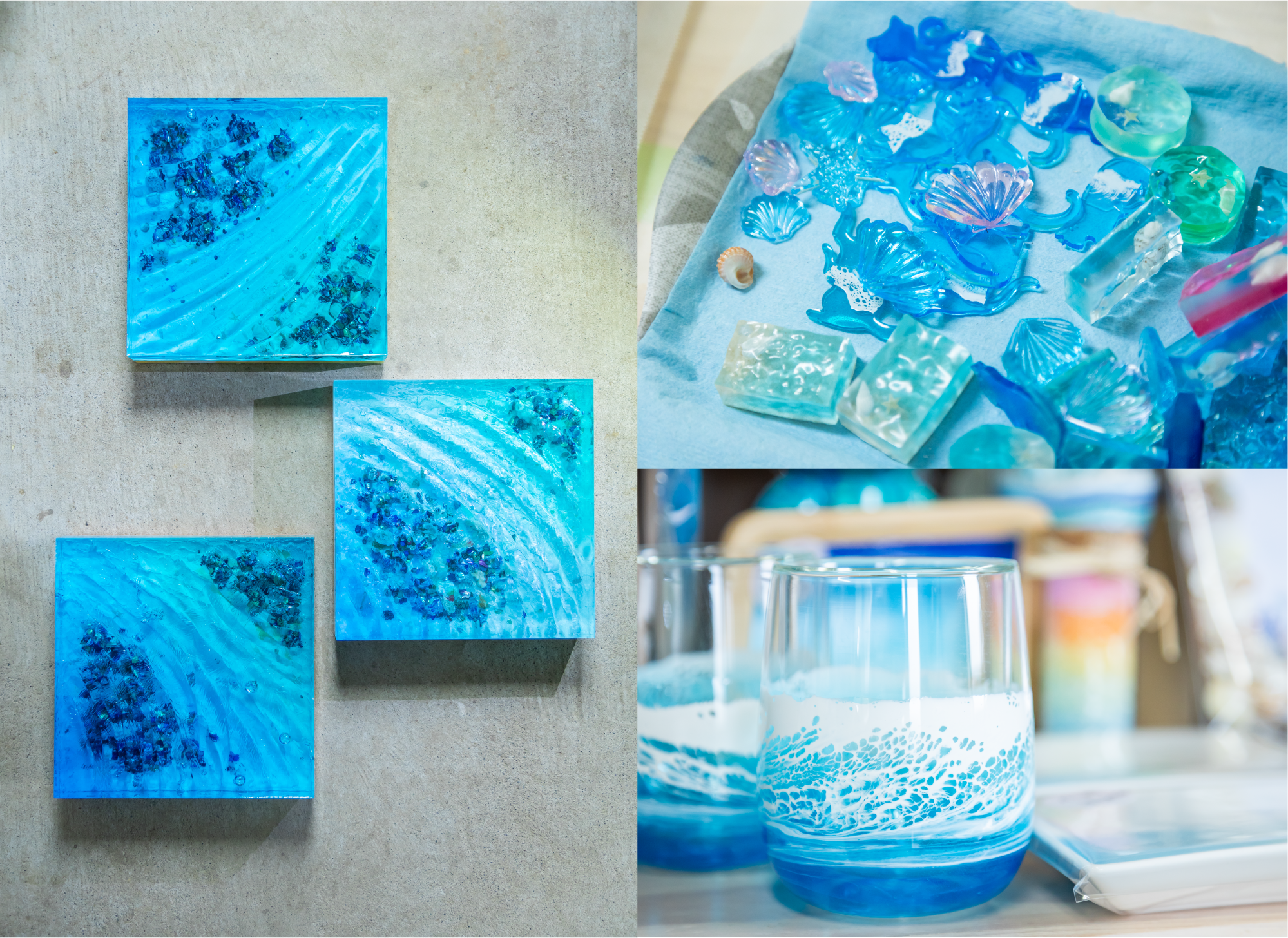 山下 私もです(笑)。作業工程を見直せば、波の表現をもっと美しく仕上げることは可能かなと思います。あとは技術的なところで、レジンの色をもう少し薄くしてより透明感のある波の表現にしようと思っています。ほかに、アイデアとしては、ゴールドを入れたり、異なる色を組み合わせたりすれば、もっとオリジナル感が出せそう。次の試作で、そのあたりも試してみますね。