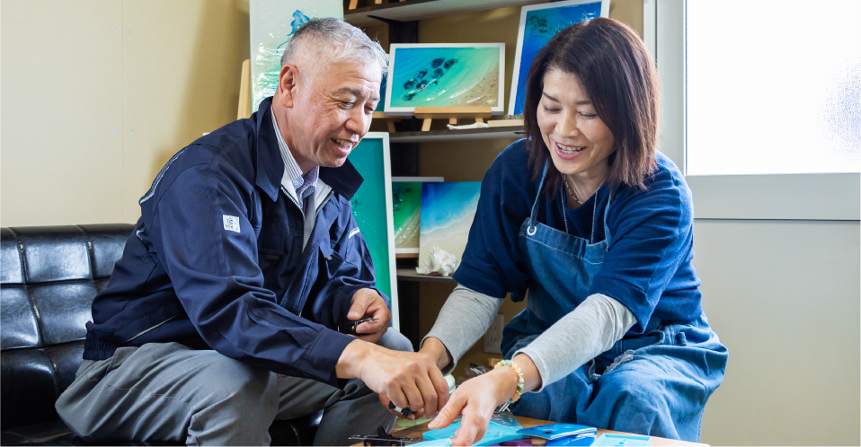 廣野 今回、山下さんとご縁がつながって、創造から付加価値が生まれるんだってことを、改めて感じられたことがうれしいです。モノづくりだけではなくどんな仕事でも同じだと思うので、これからも人との出会いから創造を広げ、仕事に活かしていきたいなと思いました。山下さんとの関係も、妻の友人がレジンアーティスト、というプライベートな一面だけでなく、仕事の面でも新しい関係をつくっていけたらいいなと思っています。今日はお忙しい中、お時間をいただきありがとうございました。