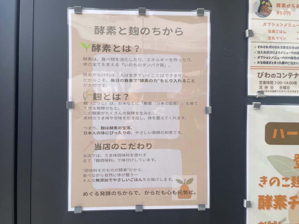 うまみ調味料を使わず、麹(こうじ)調味料のみで味付けした、無添加でやさしいごはんにこだわっています。